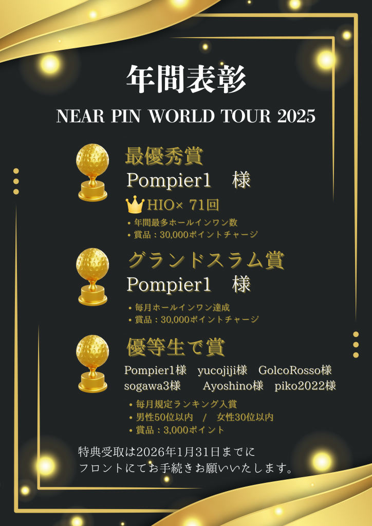 お正月企画 / 2026年も開催🎍 お年賀プレゼント配布いたします🎁 1月2日(金)先着500名様 SRIXON TTRI-STAR 干支マーク入り(1球) 1月3日(土)先 […]