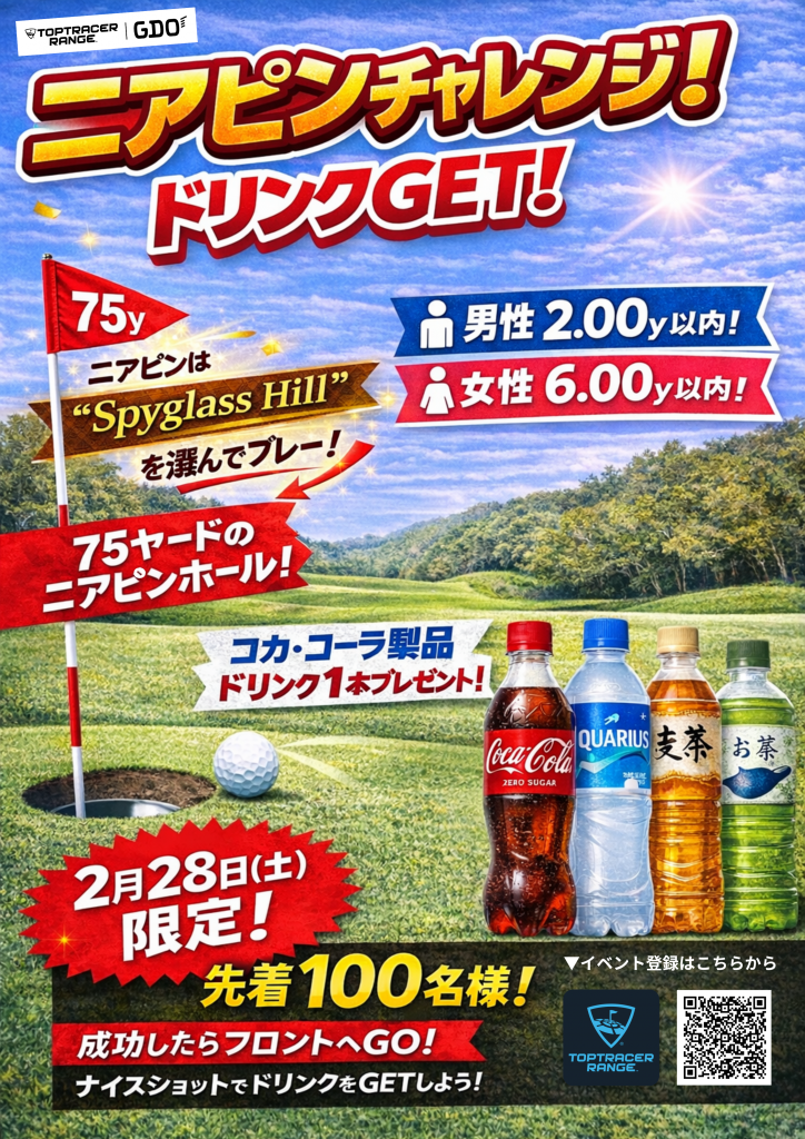 ニアピン成功で ドリンクGET!! 2/28(土)限定イベント 先着100名様 75ヤードのニアピン挑戦者 お待ちしております♪ 河本結プロに挑戦!! APPROACH CHAL […]