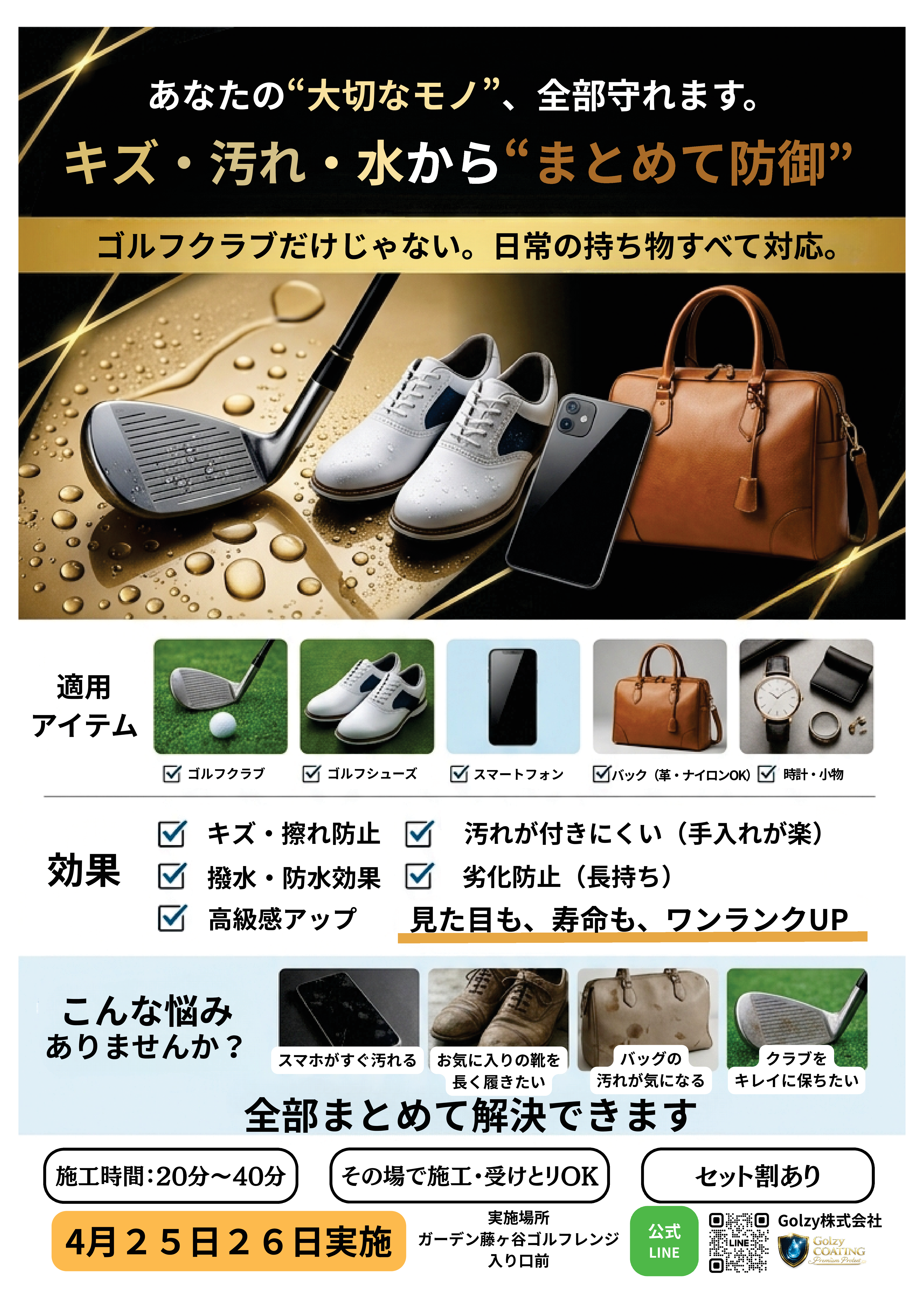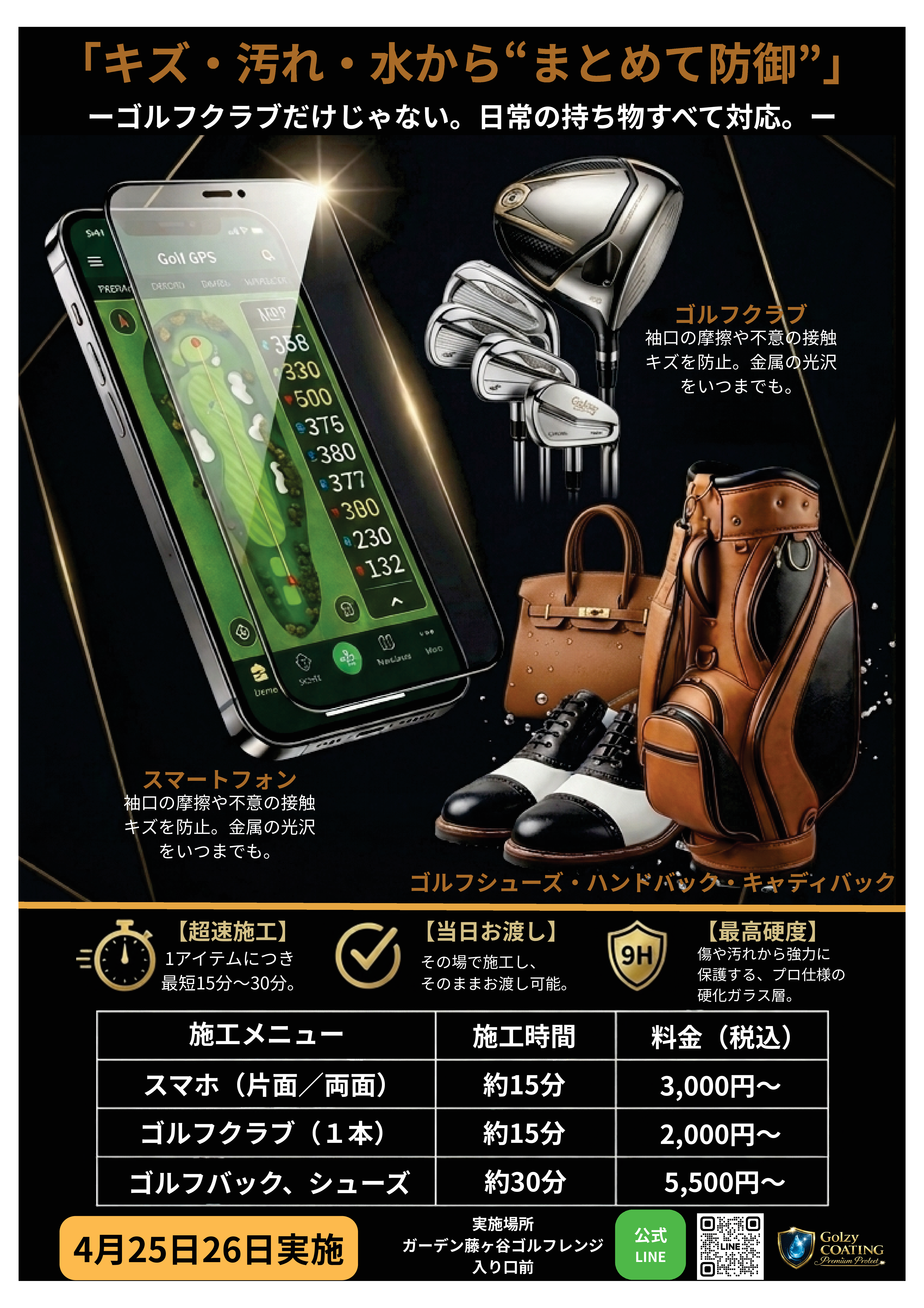 ・スマートフォン/ゴルフシューズ:約15分